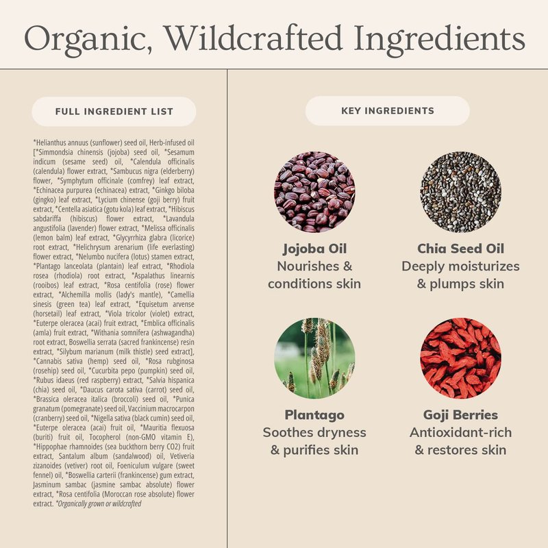 - ORGANIC & WILDCRAFTED - Our skin care products are naturally formulated, with organically grown and wildcrafted ingredients. We work with small farmers and innovative chemists to offer you the most potent, handcrafted botanical products available.
