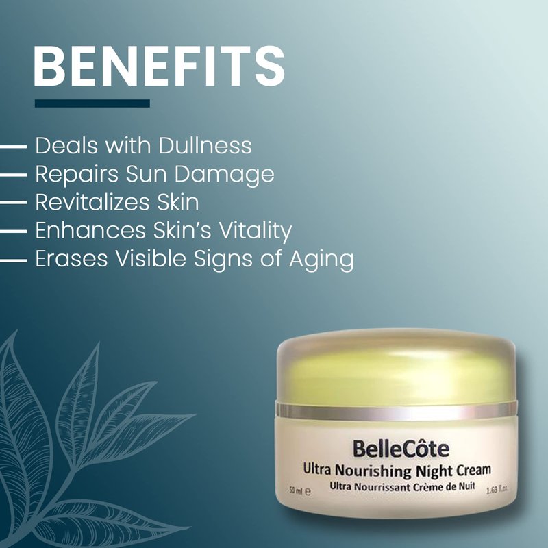 - Deals with Dullness: Bellecote ultra nourishing night cream is a retinol cream for the face that helps to deal with the dullness of skin tone. It is an anti wrinkle skin care product for women that brightens the skin complexion and nourishes it.