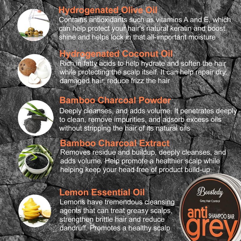 - NATURAL MOISTURIZING FORMULA: Our Anti Grey Hair Shampoo Bar is enriched with natural, moisturizing ingredients that deeply hydrate and nourish your scalp and hair. This extra strength formula helps maintain optimal moisture levels, leaving your hair soft, smooth, and shiny. It should be used regularly for reverse grey hair.