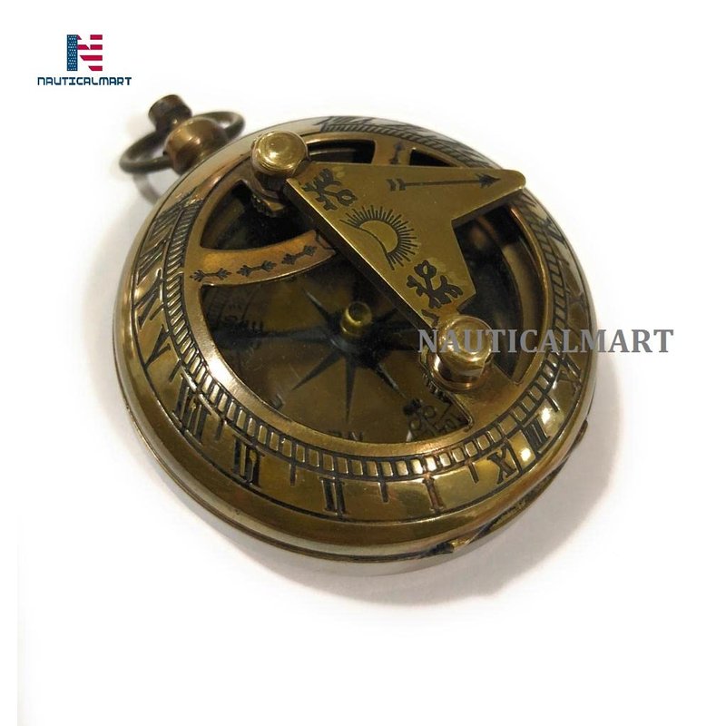 - Personalized Gift Compass: Brass Pocket Compass with lid/ Brass Pocket Compass Sundial Clock with high-quality jeweled compass needle settles to the North very quickly for timely and accurate readings. It has a small lever on the side of the compass that operates a needle lift mechanism to protect the compass bearing. Gift for someone you love. Engraved message of the Compass