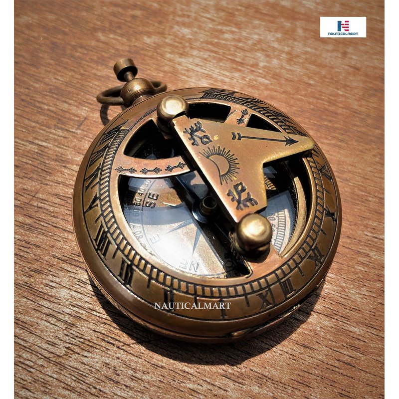 Antique Push Button Brass Sundial Compass Outdoor Navigation Directional Nautical Housewarming Gifts