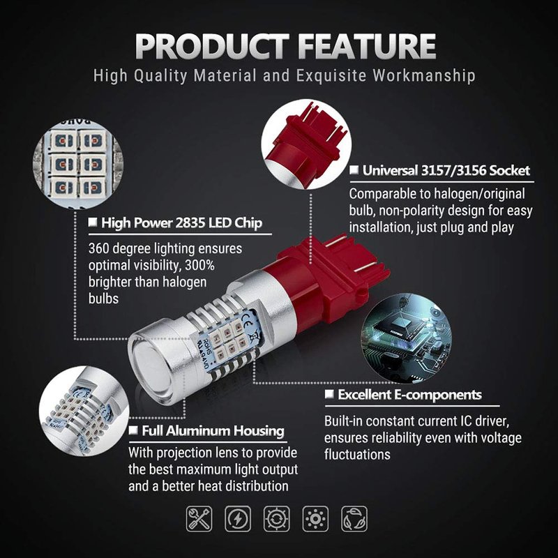 ANTLINE Extremely Bright 3157 3156 3057 4057 4157 21-SMD 2835 Chipsets 1260 Lumens LED Bulb Replacement Brilliant Red