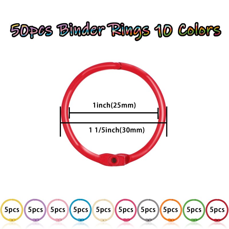 - Package includes: 50pcs book rings, 10 colors: orange, light pink, red, gray, purple, blue, yellow, rose red, green, light yellow, each color 5pcs