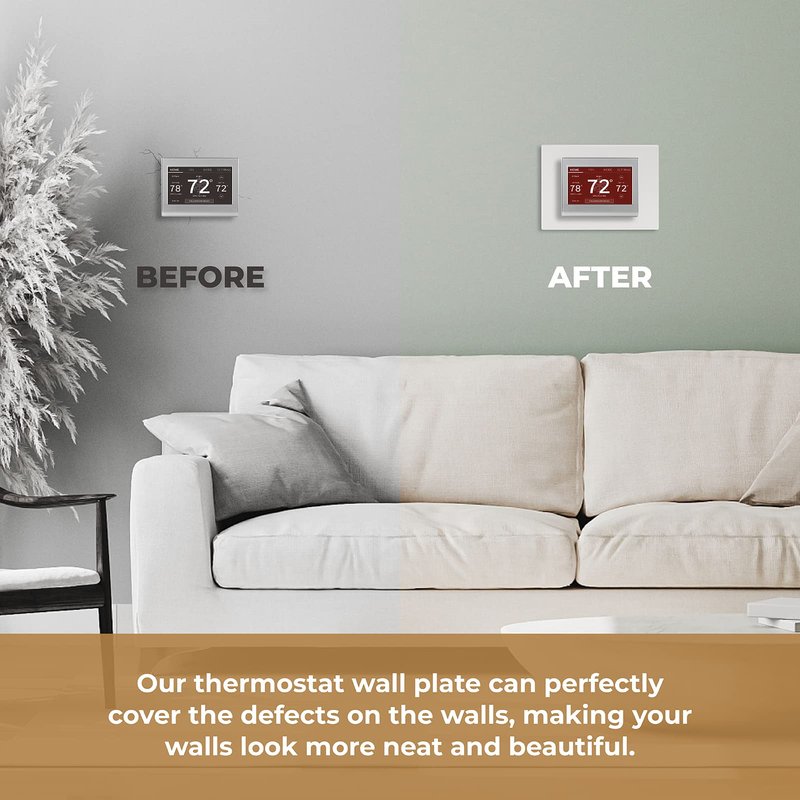 - 【WALL PLATE FOR THERMOSTAT】If there's an unsightly mess left around your thermostat (holes in the drywalls, unpainted walls, etc.), I sincerely recommend you to try our thermostat wall cover. It can perfectly cover the defects on the walls, making your walls look more neat and beautiful.