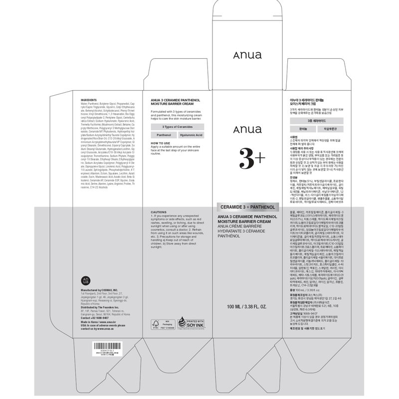ANUA 3 Ceramide Panthenol Moisture Barrier Cream, Hydrating Face Moisturizer for Normal Skin, Panthenol, Ceramide, Centella for Skin Barrier Non Comedogenic, Korean Skincare (100ml/ 3.38 fl. oz.)