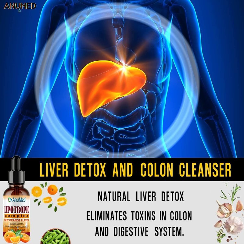 ANUMED - Lipotropic Complex Liquid Drops with Vitamin B12, B6, Folic Acid, Choline, Inositol for Liver Health, Natural Cleanser, Detox + Boosts Natural Energy Levels. Vegan, Non-GMO, Gluten-Free (2oz)
