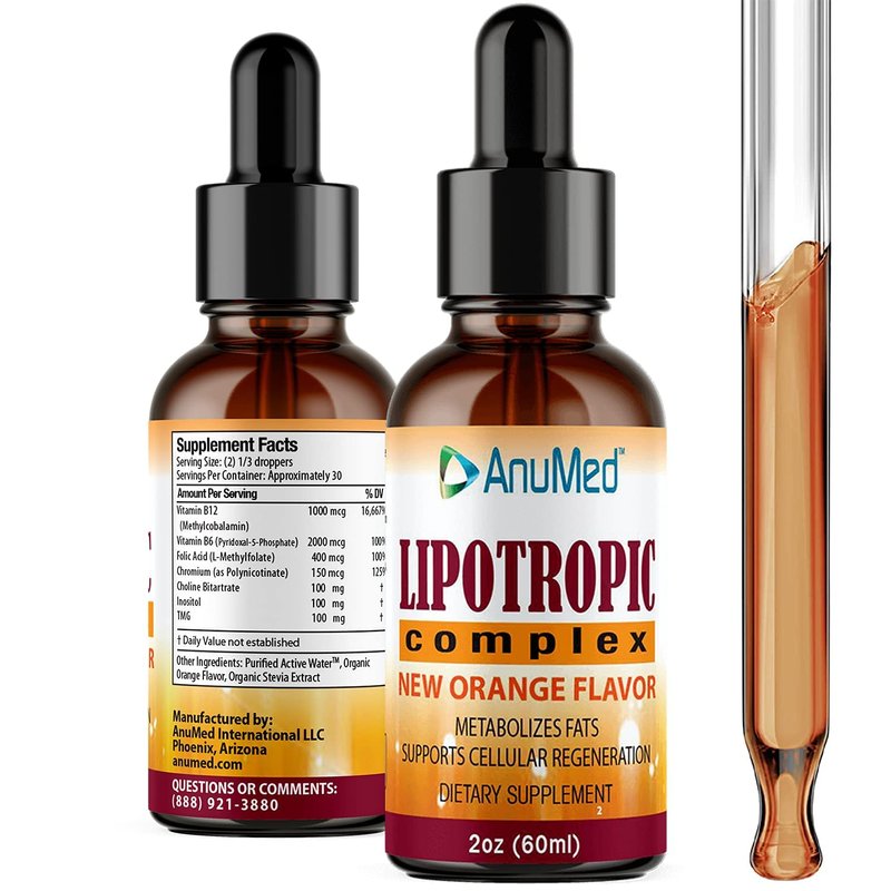- Lipotropic Complex Liquid Drops with Vitamin B12, B6, Folic Acid, Choline, Inositol, TMG.