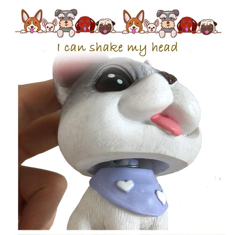 Bobble head puppy decoration can perfectly decorate your car, room, office, desk, etc. The cute puppy can bring you a good mood. Items contained in the package: Pug(5.7*5.3*6.7cm/2.25*2.1*2.63in),146g French bull dog (5.5*5.1*8.3cm/2.17*2*3.26in),132g Husky (5.3*5.9*7.2cm/2.86*2.84*1.97in),128g.