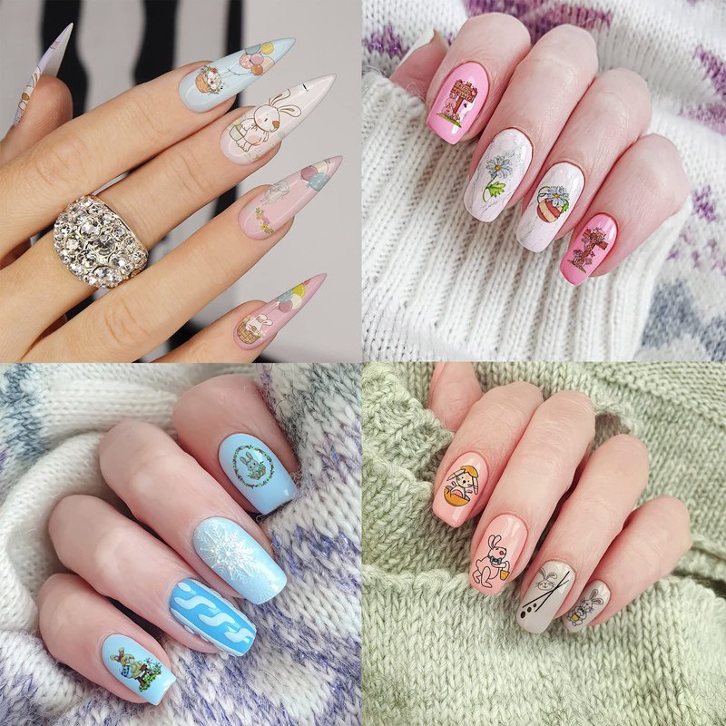 - 2 HOLIDAY THEME: Our nail stickers are featuring the theme of St. Patrick's Day and Easter, patterned with popular holiday elements, such as shamrock, Leprechauns, gold coin, Easter egg, bunny, chick, etc., cute and festive, offering multiple choices to DIY your nail.