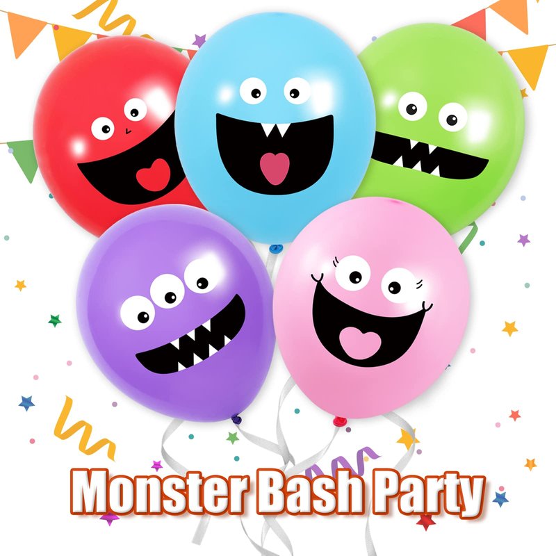 - CUTE MONSTER PATTERN: The balloons have green, purple, blue pink and red color, and have different monster patterns, bright colors and cute patterns can add a happy atmosphere to your party. The balloons measure approximately 12" (30cm) when inflated.