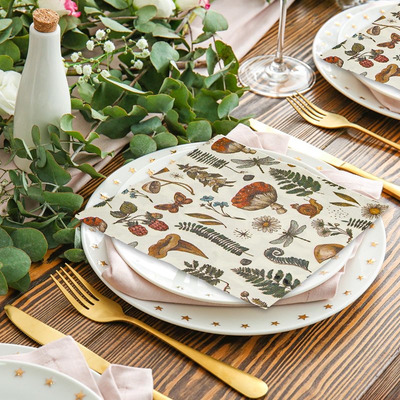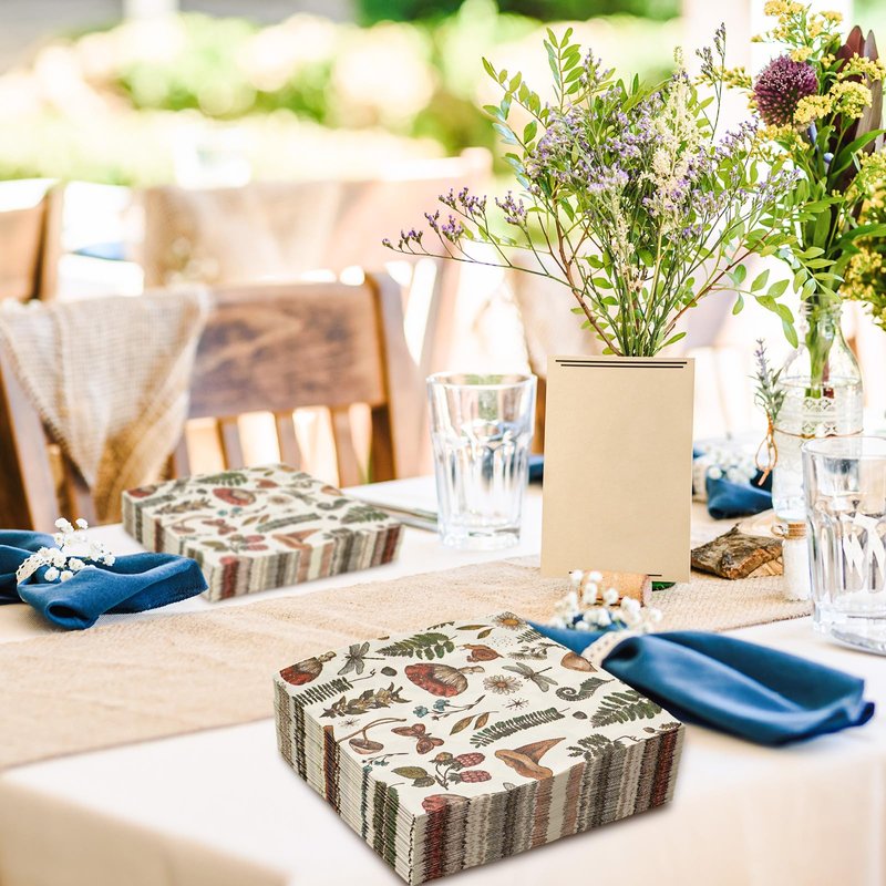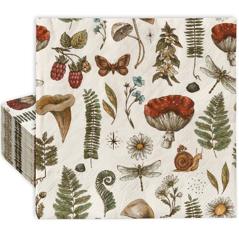 AnyDesign 80Pcs Vintage Mushroom Paper Napkins Disposable Mushroom Plants Luncheon Napkins Retro Style Dessert Dinner Hand Napkin for Autumn Birthday Wedding Party Supplies, 6.5 x 6.5 Inch