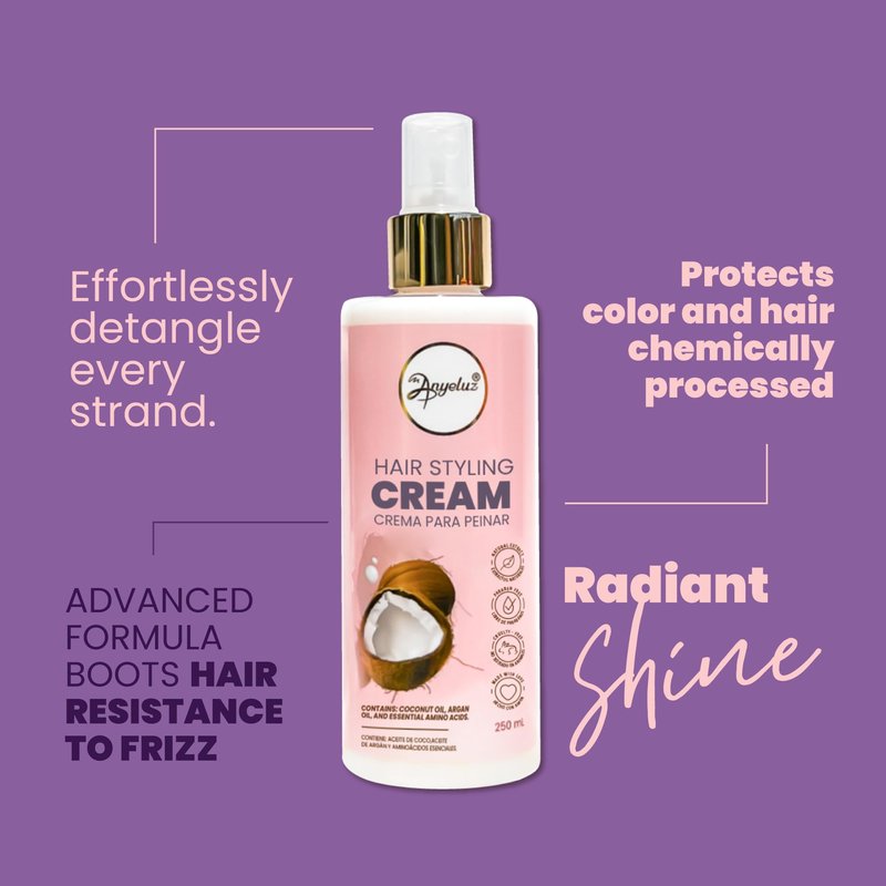 - Easily comb your hair while strengthening it. Anyeluz styling cream provides extreme strength and hydration. So say goodbye to extreme damage, increase the resistance of the hair fiber to frizz, also detangles and conditions all types of hair. Provides a shiny and healthy appearance, allowing better control when combing. Increases color retention (if you use dyes) after wash cycles, prolonging it over time