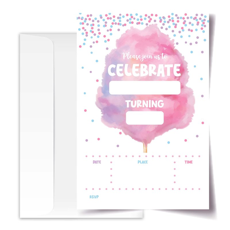 ANYEMW 4x6 Cotton Candy Birthday Invitations, Cotton Candy Party Decorations Favors Supplies, Birthday Invitations Girl, 20 Cards with 20 Envelopes.(72)