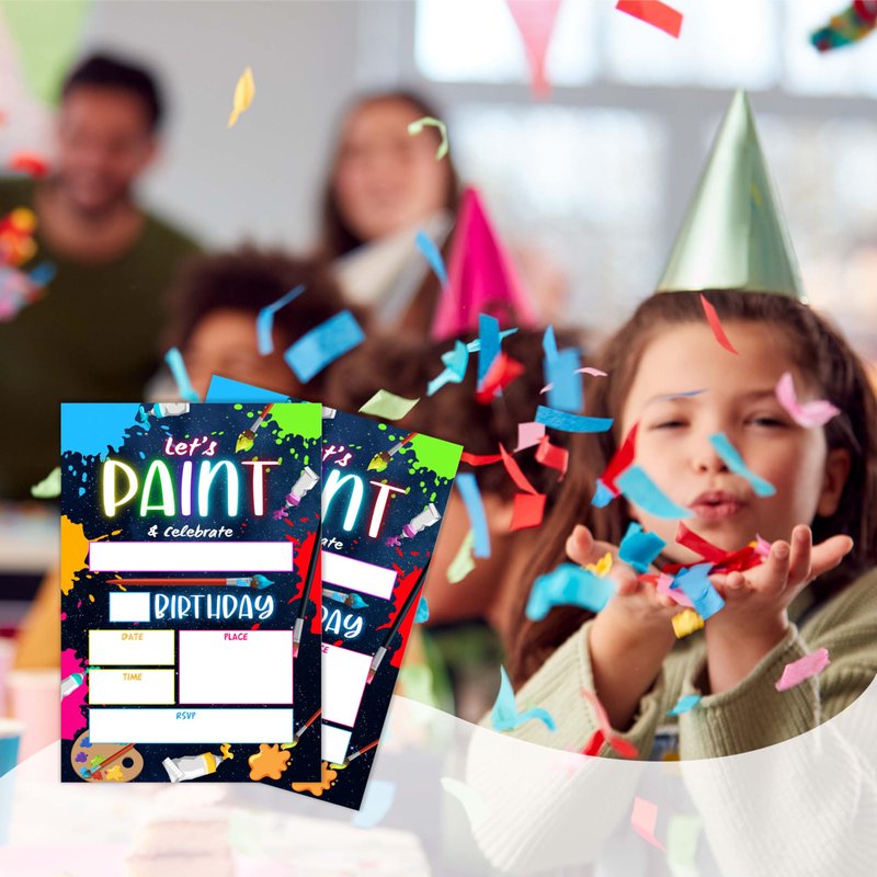 ANYEMW 4x6 Paint Birthday Invitations, Art Party Decorations, Glow Party Supplies, Art Birthday Party, Kids Birthday Invitations, 20 Cards with 20 Envelopes.(38)