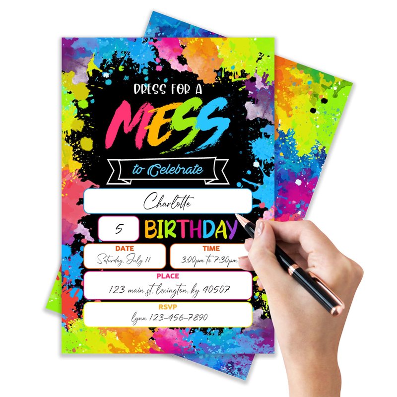 ANYEMW 4x6 Paint Birthday Invitations, Art Party Decorations, Glow Party Supplies, Art Birthday Party, Kids Birthday Invitations, 20 Cards with 20 Envelopes.(39)