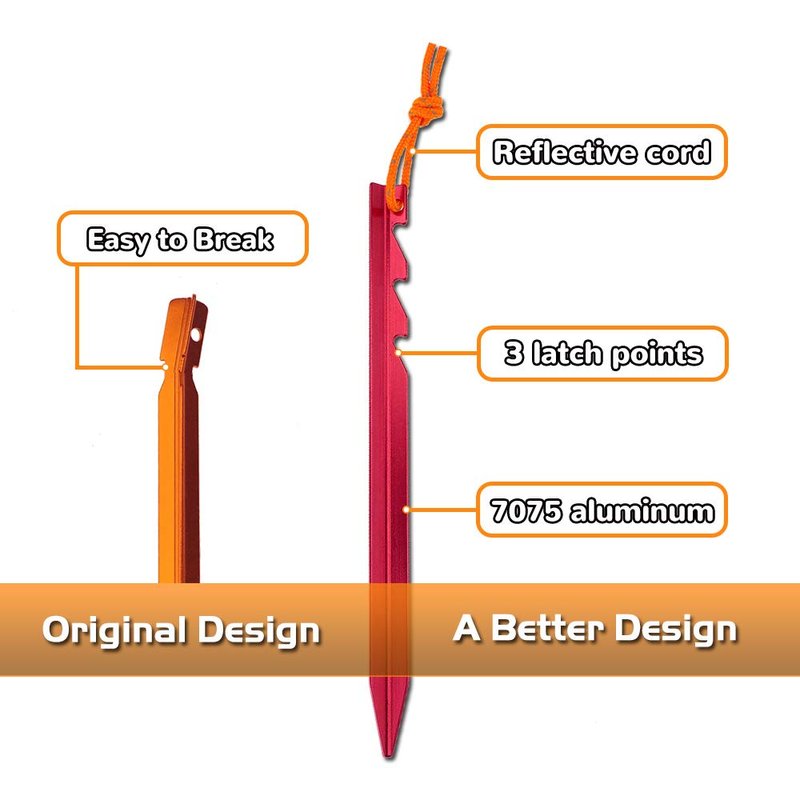 - PREMIUM MATERIAL - The ANYGEAR stakes are constructed from 7075 aircraft-grade aluminum alloy. Ultralight but much higher tensile strength, and you won't have to worry about the hassle of a broken tent peg in the backcountry.