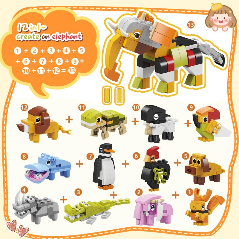 - High Quality & Safety:Our animal building toys are crafted to detail using high-quality, safety plastic materials. Please note that the toy building sets contain small parts and should be used under adult supervision for children under 5/6 years old, to prevent swallowing