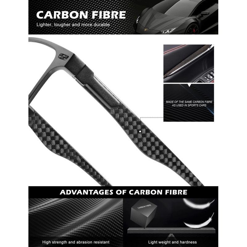 - 💻Modern Carbon Fiber Material ▶ This type of blue light glasses men feature lightweight material,offer maximum comfort and durability, allowing to wear them for extended periods without any discomfort. Compared with pure metal frames blue ray glasses, carbon fiber blue light filter glasses provide better high tensile strength, low weight, high temperature tolerance. Don't settle for less when it comes to your eyes– try our premium anti blue light glasses and elevate your visual experience.