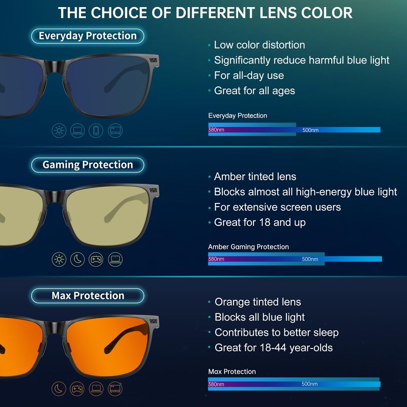 - 💻Overall Blue Block Rate: 45% ▶ This mens blue light glasses designs with low color distortion lens, provides the perfect balance between eye protection and viewing quality, significantly reduce harmful blue light emitted byelectronic screens, release eye fatigue, make eyes relaxed, meantime improve sleep quality. Suitable for various scenes such as work and andentertainment.