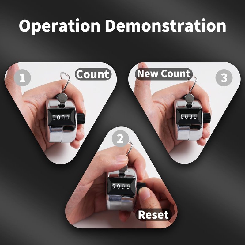 - Precise Counting - To ensure you have perfect control over the counting process, the counter has a sophisticated mechanical design that provides a slight audible feedback and a comfortable bounce with each press. Counts up to 9999 maximum.
