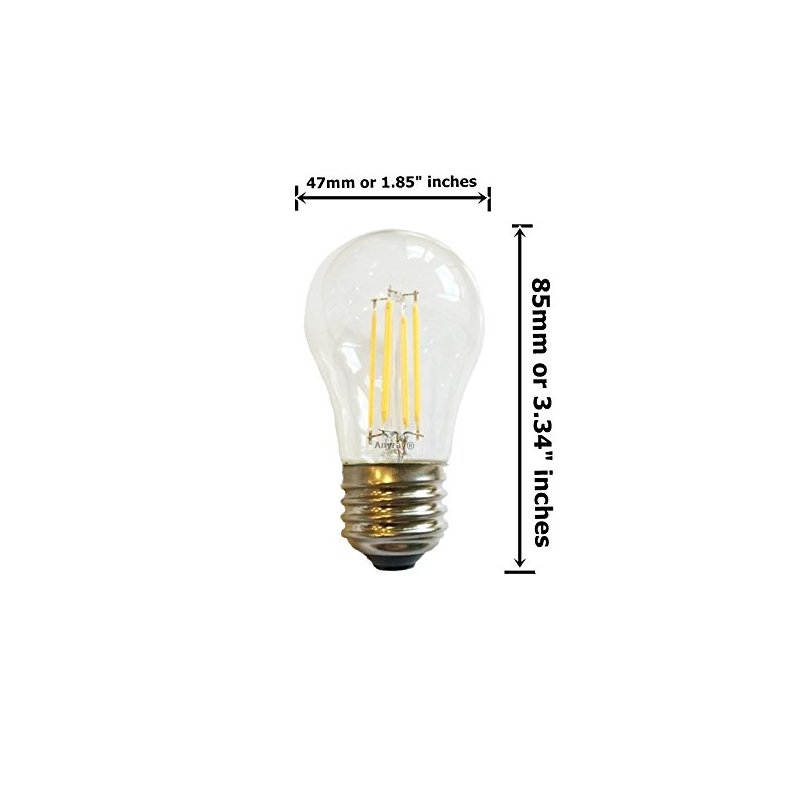 (3)-Pack LED Filament A15 4W =(40W Equivalent) Appliance Freezer Refrigerator Light Bulb E26 Medium Base Anyray Base: screw , Bulb Type: A15 , Watts: (40W Equivalent) Dimmable
