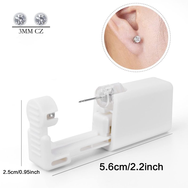 - 💎𝟏𝟔𝐏𝐜𝐬 𝐄𝐚𝐫 𝐏𝐢𝐞𝐫𝐜𝐢𝐧𝐠 𝐊𝐢𝐭 - You will receive 2 Pack Ear Piercing Gun, 2Pcs 20 Gauge Cubic Zirconia Ear Stud (𝐄𝐚𝐫 𝐒𝐭𝐮𝐝 𝐚𝐫𝐞 𝐏𝐫𝐞𝐥𝐨𝐚𝐝𝐞𝐝 𝐢𝐧 𝐭𝐡𝐞 𝐄𝐚𝐫 𝐏𝐢𝐞𝐫𝐜𝐢𝐧𝐠 𝐆𝐮𝐧), 4 Pcs S925 Ear Sticks, and 6 Pcs Disposable Waterproof Ear Covers, 2 Pcs Alcohol Pads.