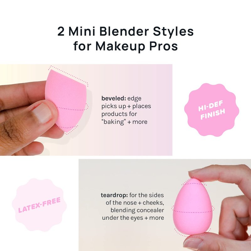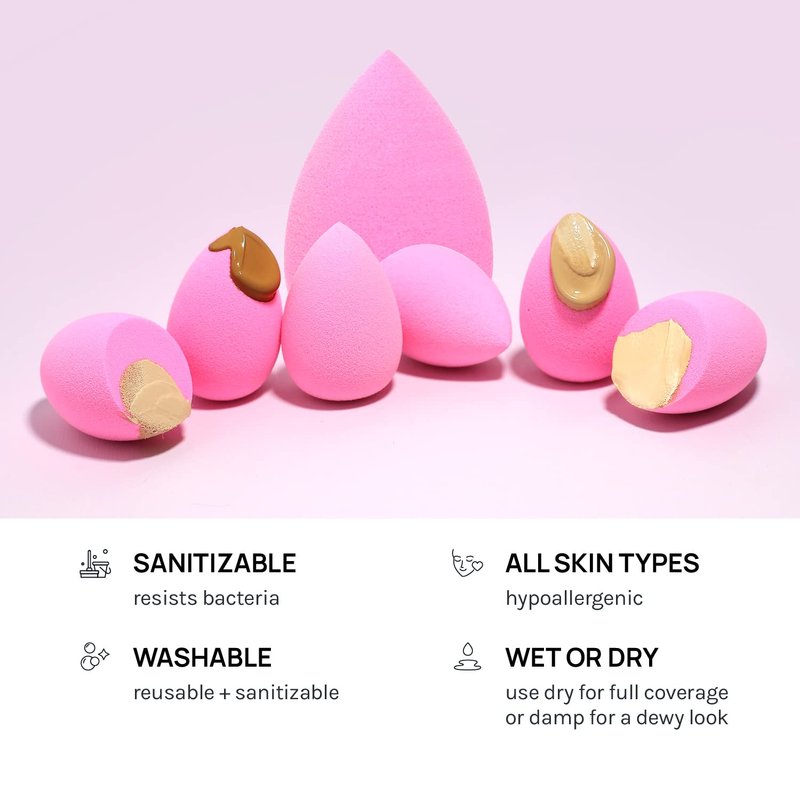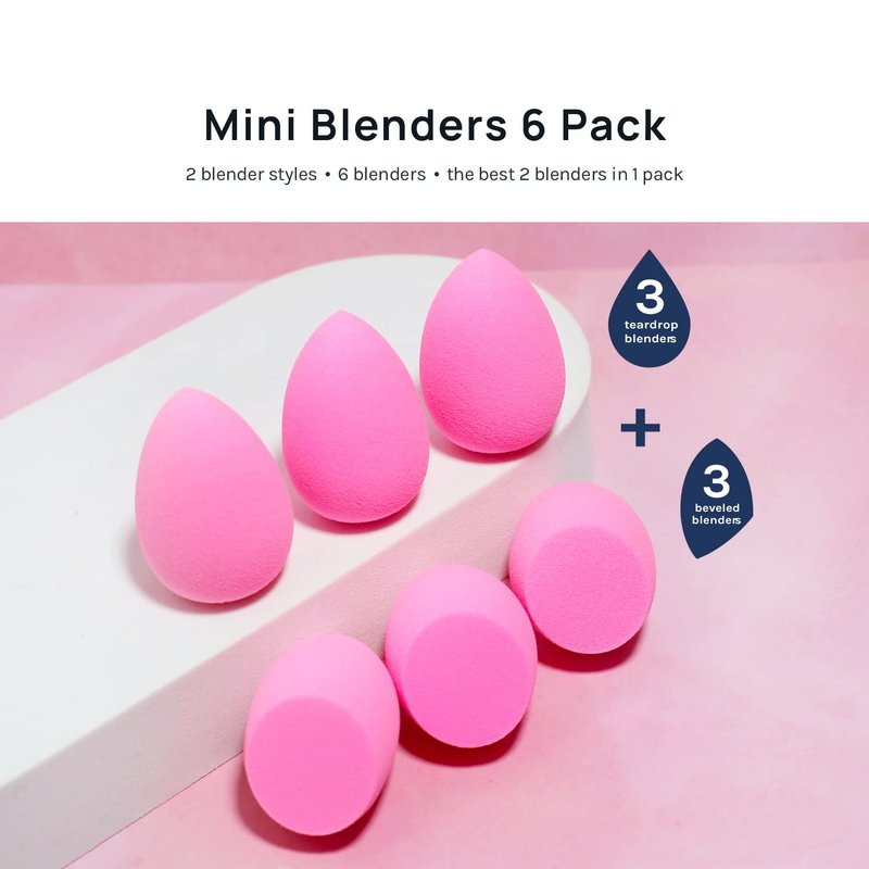 AOA STUDIO Collection MiNi Makeup Sponge Set Blender Latex Free and High-definition of 6 For Powder Cream Liquid, Super Soft Wonder Beauty Cosmetic 3 Tear Drop + Beveled Shape (Pink)
