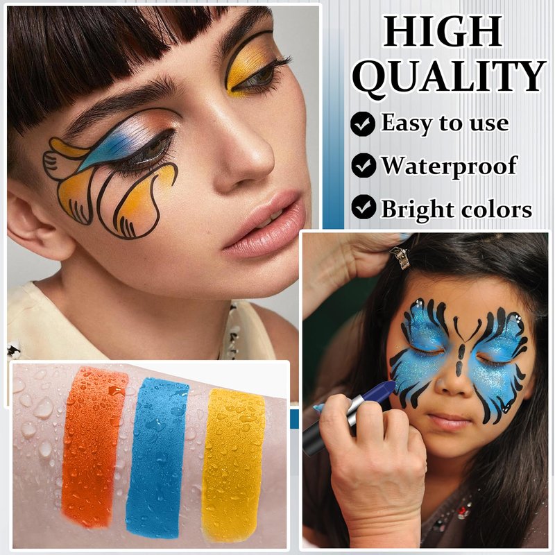 - 【Long-Lasting&Waterproof】Face painting stick is made of high-quality formula,with strong coloring power,not easy to fade,and has good waterproof effect,long-lasting makeup,allowing you to maintain a high-color exquisite makeup for a long time.
