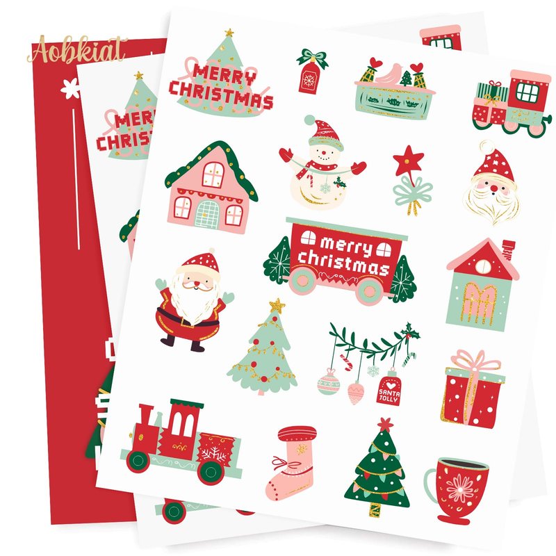 AOBKIAT Christmas Temporary Tattoos,36 Glitter Styles Fake Tattoos Stickers for Body Face,Red Green Christmas Party Decorations,Goodie Bag Stuffers Fillers,Office School Xmas Party Favors