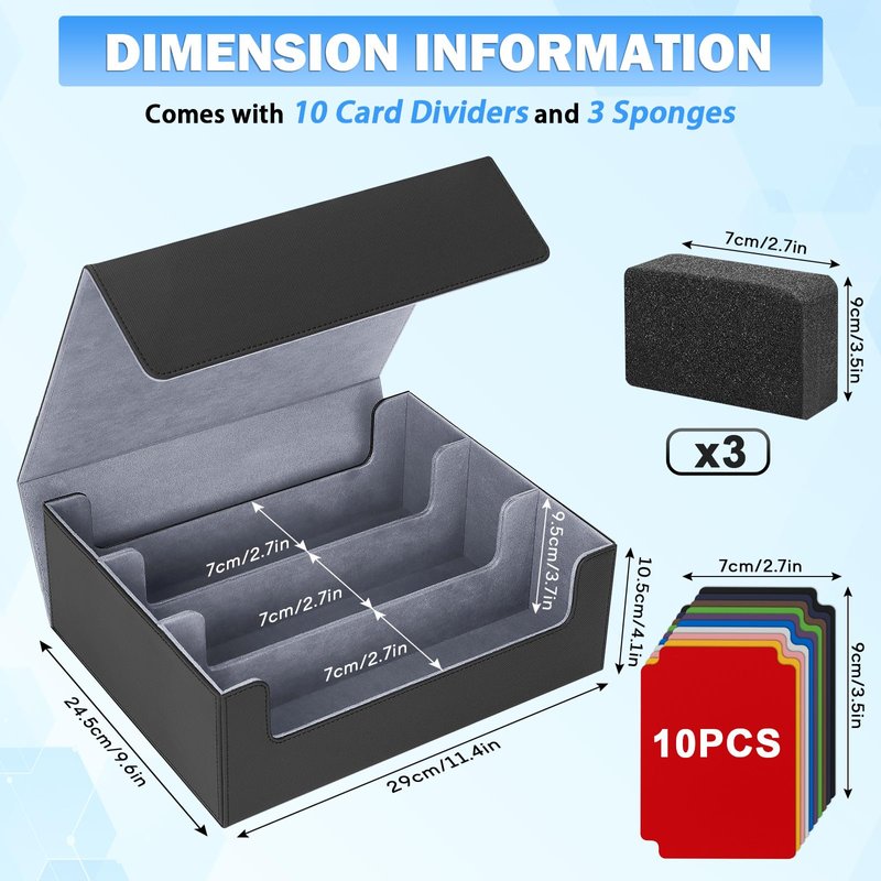 - 【For All Trading Cards】Our deck storage box fits the standard trading card size up to 2.85 x 3.7 inches. Please check the size before purchase.Our card desk box is suitable for Magic,Commander,MTG, YuGiOh! and sports cards, Compatible with a variety of TCGs, CCGs, LCGs and other collectible cards,it's the ultimate storage solution for any collector.