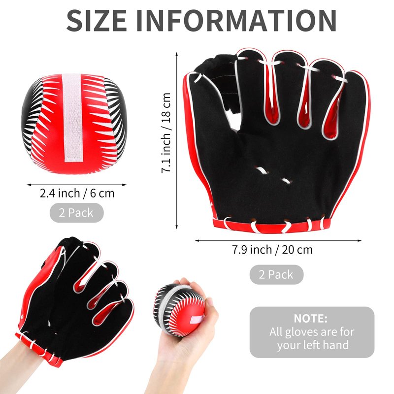 - Size Information: The gloves measure approximately 7.9 x 7.1 inches / 20 x 18 cm, which will fit most young players. The ball is 2.4 x 2.4 inches / 6 x 6 cm in size, which is the ideal size for fun and engaging activities.