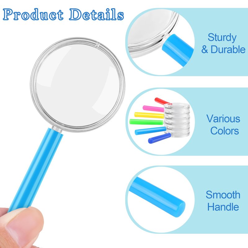 - 6 Colors: The handles of these magnifying glasses come in six different colors - green, blue, pink, red, yellow, and dark blue, with four of each color. This colorful collection is can captivate your interest and preference, making learning and exploration an exciting endeavor.