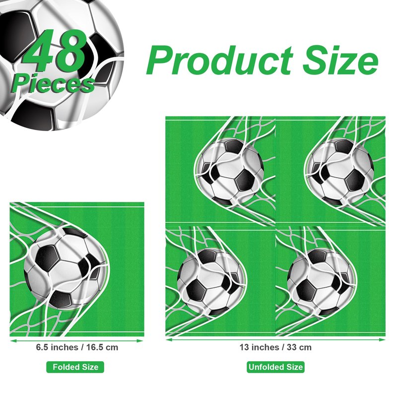 - Generous Quantity: enjoy a set of 48 soccer-themed disposable paper napkins, thoughtfully sized at an unfolded dimension of 13 x 13 inches/33 x 33 cm and folded to a compact 6.5 x 6.5 inches/16.5 x 16.5 cm; these dimensions make the soccer napkins easy to carry and store, ensuring you have ample supply for your guests