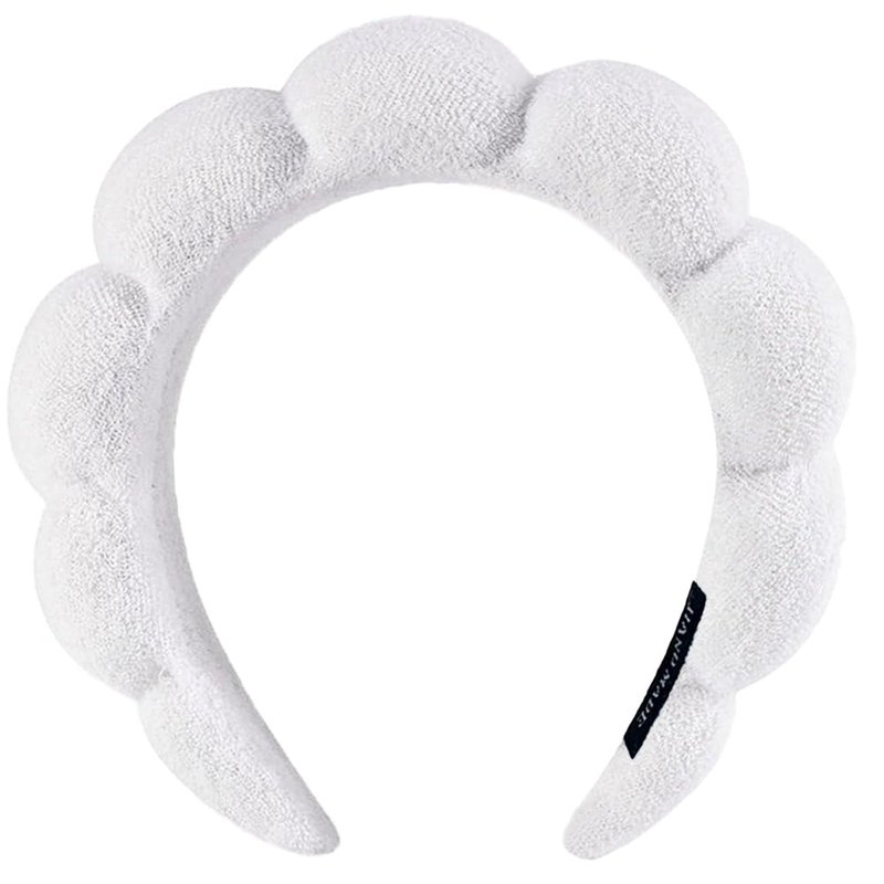 AOENJIE Spa Headbands for Washing Face or Makeup, Sponge Bubble Skincare Headbands, Puffy Terry Cloth Hairband for Women, Skin Care Makeup Headwear Hair Accessories for Girls (White)