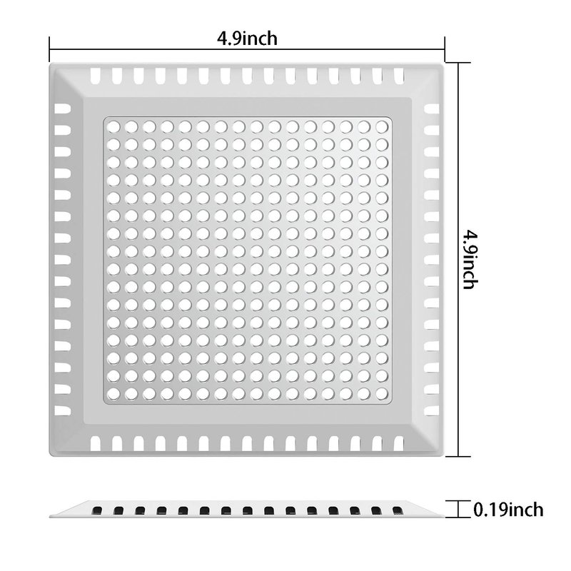 - ✬ The shower drain hair catcher is measured 4.9 L x 4.9 W (inches), fit for drain below 4 inch,square shape covers both round and square style shower drains,perfect for shower drain. Attention: pls measure your drain before purchase.