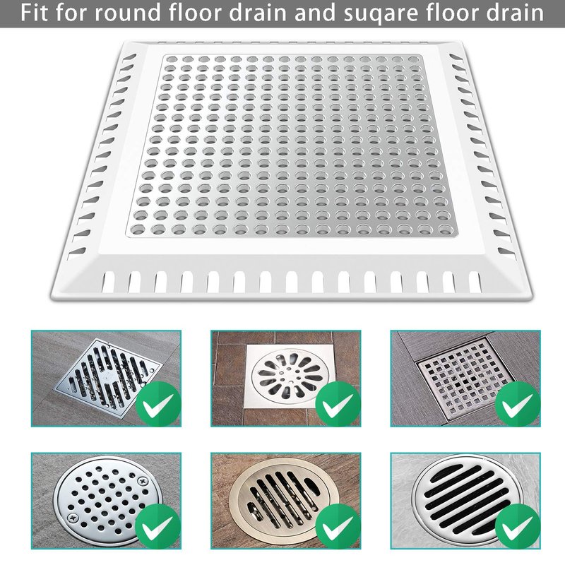 - The shower drain hair catcher is measured 6.85 L x 6.85 W (inches), fit for drain below 6 inch,square shape covers both round and square style shower drains,perfect for shower drain. Attention: pls measure your drain before purchase.