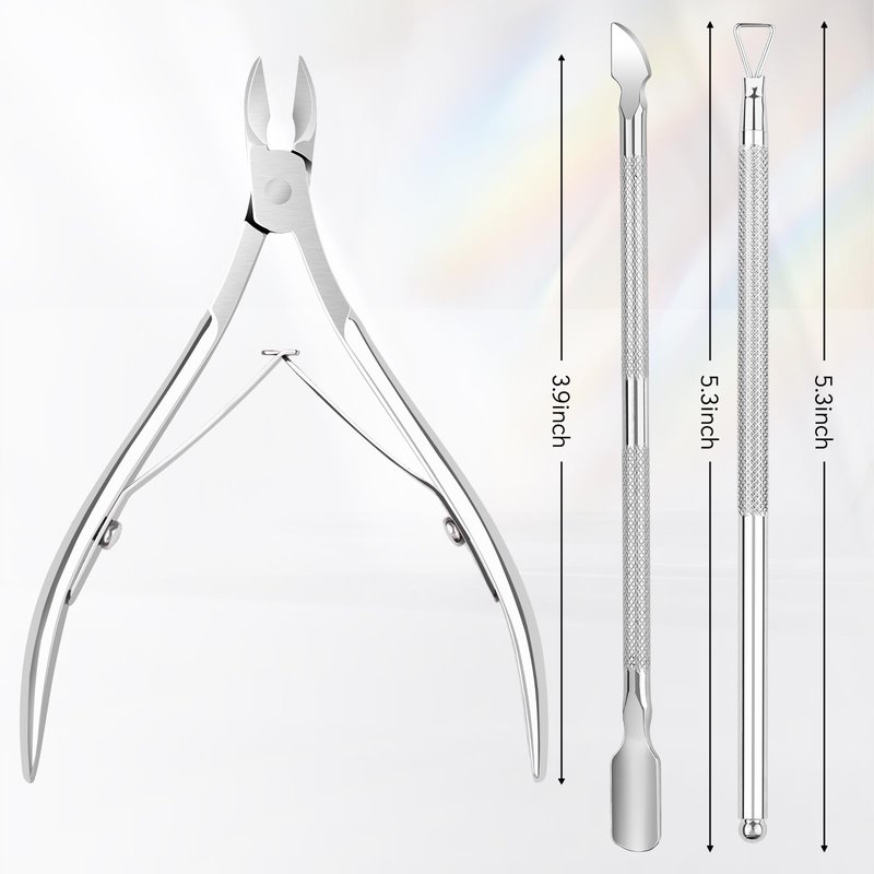 - ποΈ Durable and User-Friendly Design - Aokitec cuticle trimmer features a built-in rebound design for enhanced flexibility and durability. With a 10mm blade, it's perfect for novices. The thin blade ensures a precise cut, and the protective cover adds an extra layer of safety. Crafted from stainless steel, the cuticle trimmer, cuticle pusher, and triangle nail scraper boast an anti-slip design for maximum control, ensuring strength and durability.