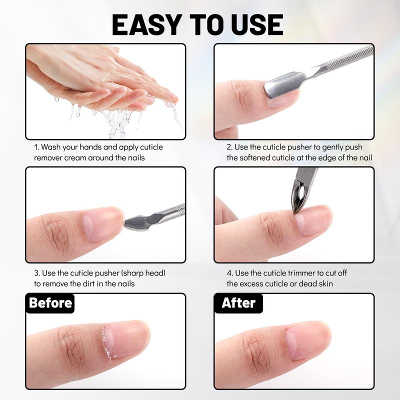 - ποΈ Complete Manicure & Pedicure Solution - Elevate your nail care routine with our cuticle trimmer with cuticle pusher all-in-one nail kit designed for both manicures and pedicures. Perfect for achieving salon-quality results in the comfort of your own home.