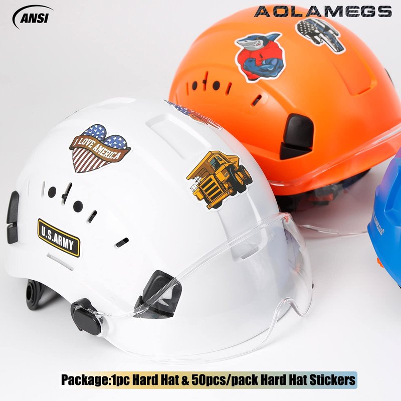 AOLAMEGS ABS Safety Hard Hat - ANSI Z89.1 Approved Safety Helmet Adjustable Vented Hardhat for Men Women Adults Safety Hardhats for Outdoor Indoor Industrial Construction Workwear (White Clear Visor)