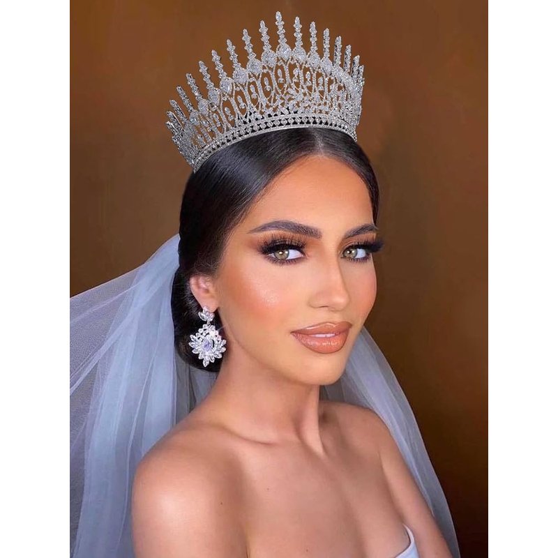 This Aoligrace Cubic Zircon crowns and tiaras is fit for women, girls, brides and bridesmaid. This wedding crown features shinning cubic zirconias at the center and is come with a gift box.