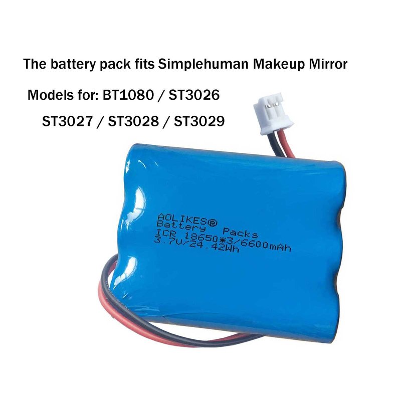 AOLIKES 3.7v 6600mAh Rechargeable Battery Pack for Simplehuman Sensor Makeup Mirror ST3026 BT1080 Battery Replacement ST3027 3028 and More, 1s3p Batteries Pack
