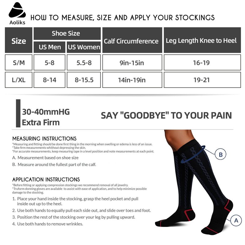 Aoliks compression socks will offer you ultimate comfort and convenience. Compared to other brands, our socks are much easier to put on and take off. We have also designed our socks to help keep your feet dry, Aoliks are made from the best wicking yarns available.