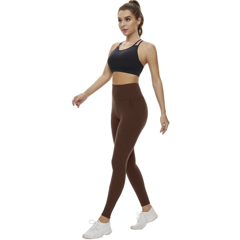 Aoliks Leggings with Pockets for Women - Yoga Pants with Pockets,Soft High Waist Tummy Control Non See Through Workout Pants Brown