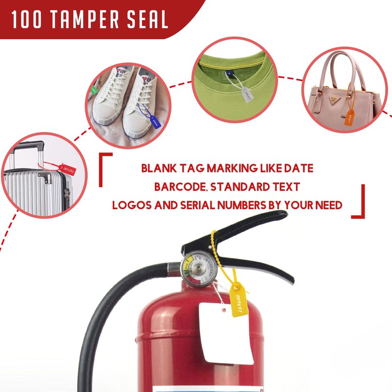- 【Applications】These adjustable plastic security tags are suitable for fire extinguisher, first aid kit, luggage, suitcase, cloth, shoes, bags, sacks, storage, sprinkler systems, tractors and trailers, cash bags, vote box, donation box, vehicle doors, TIR cables, curtain side buckles, storage bins, ID tags,prevent being transferred or stolen during transportation.