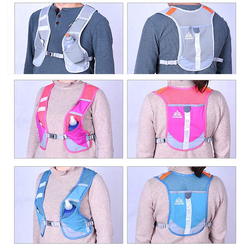 AONIJIE Men Women Ultralight Running Vest Pack Reflective Breathable Hydration Backpack for Hiking Camping Marathon Cycling Race (Rose- with 2 pcs 250ml Bottles)