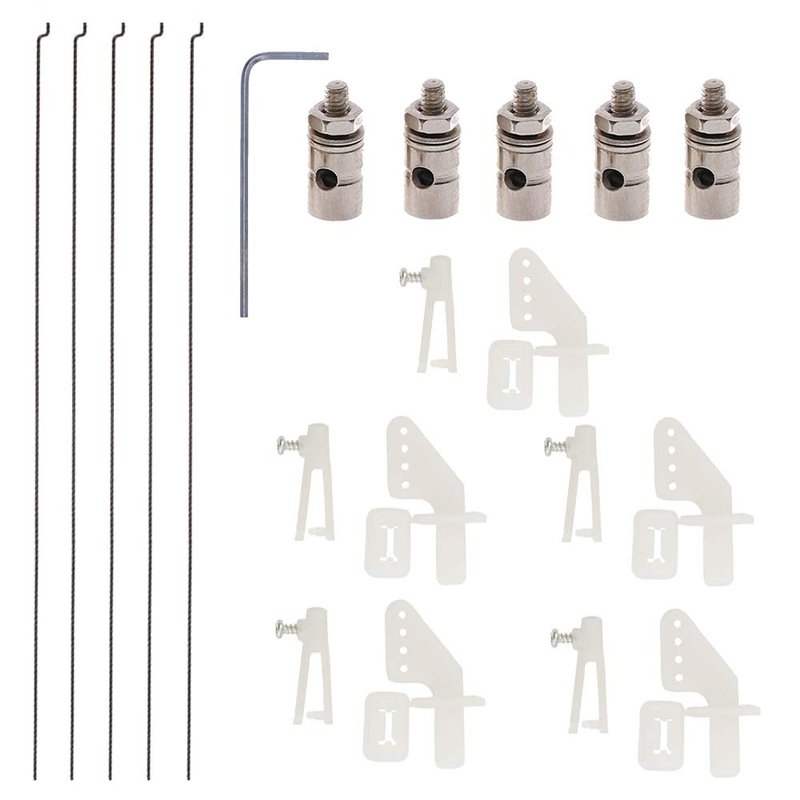 AONTOKY 5 Sets Nylon Control Horns + Steel PushRods + Pushrod Connector Linkage Stopper Parts for RC Airplane Model Aircraft
