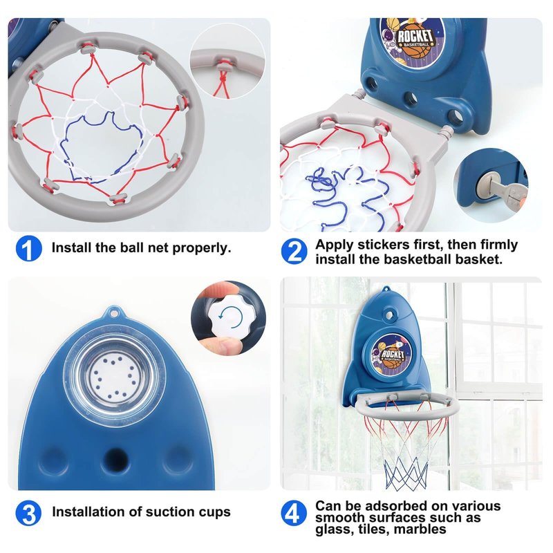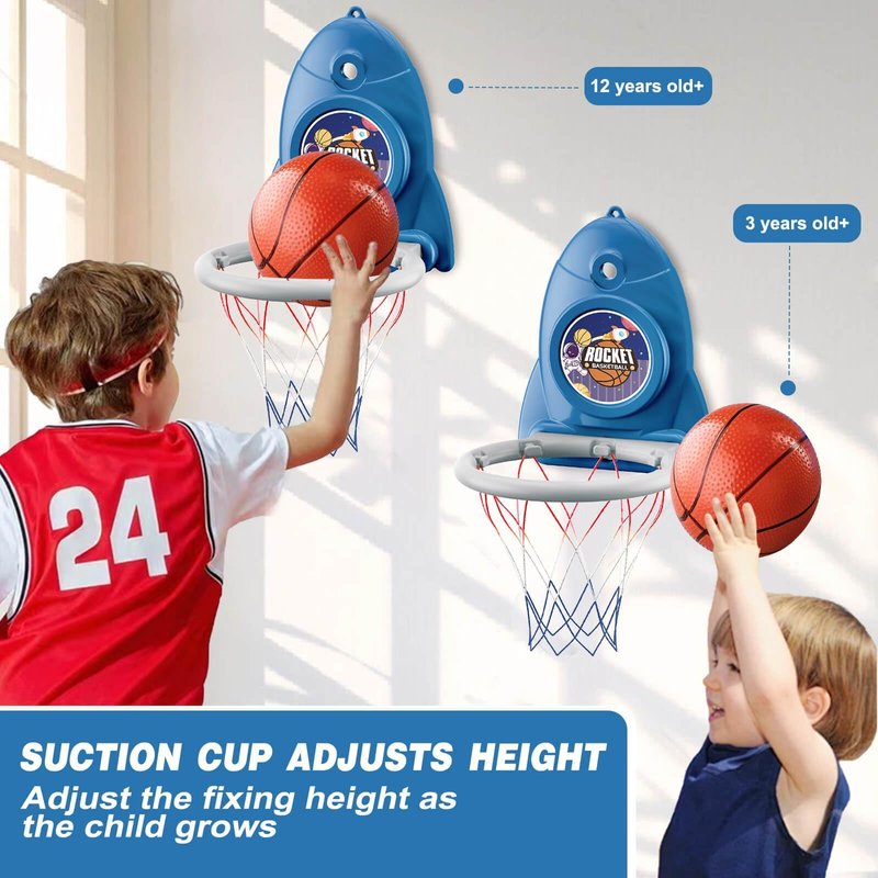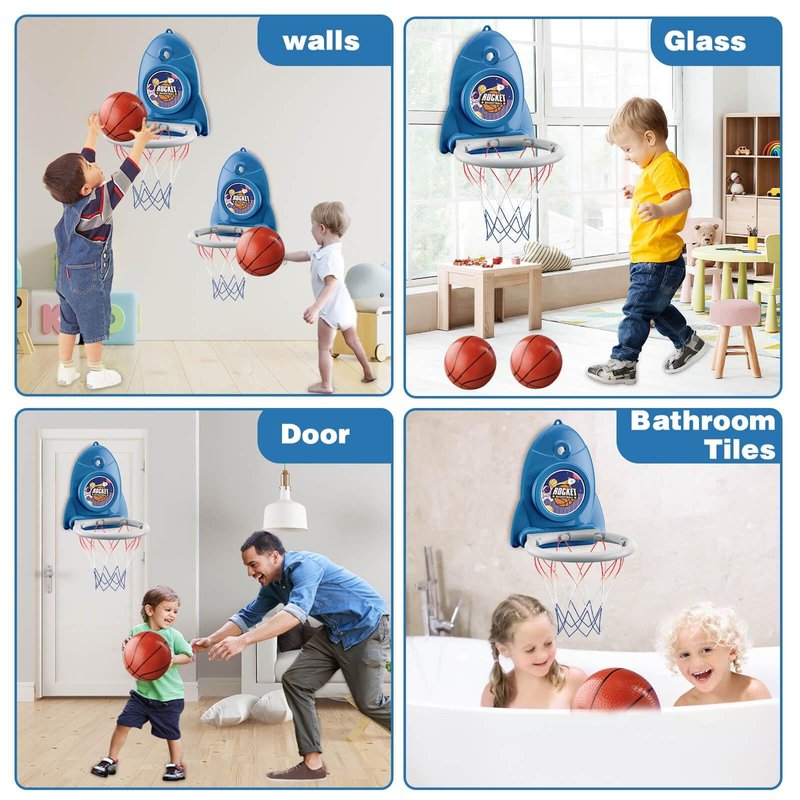 - Mini Indoor Basketball Hoop: Turn playtime into a space adventure with our rocket head design basketball hoop. Includes 1 board, 2 mini basketballs, 1 air pump, and strong suction cups for secure attachment. Ideal for indoor play and sports interest