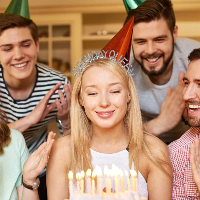 - Classic Design make this princess crown suitable for any hair styles. Embedded 168 rhinestones happy birthday tiara let you sparkling as a star in the party.