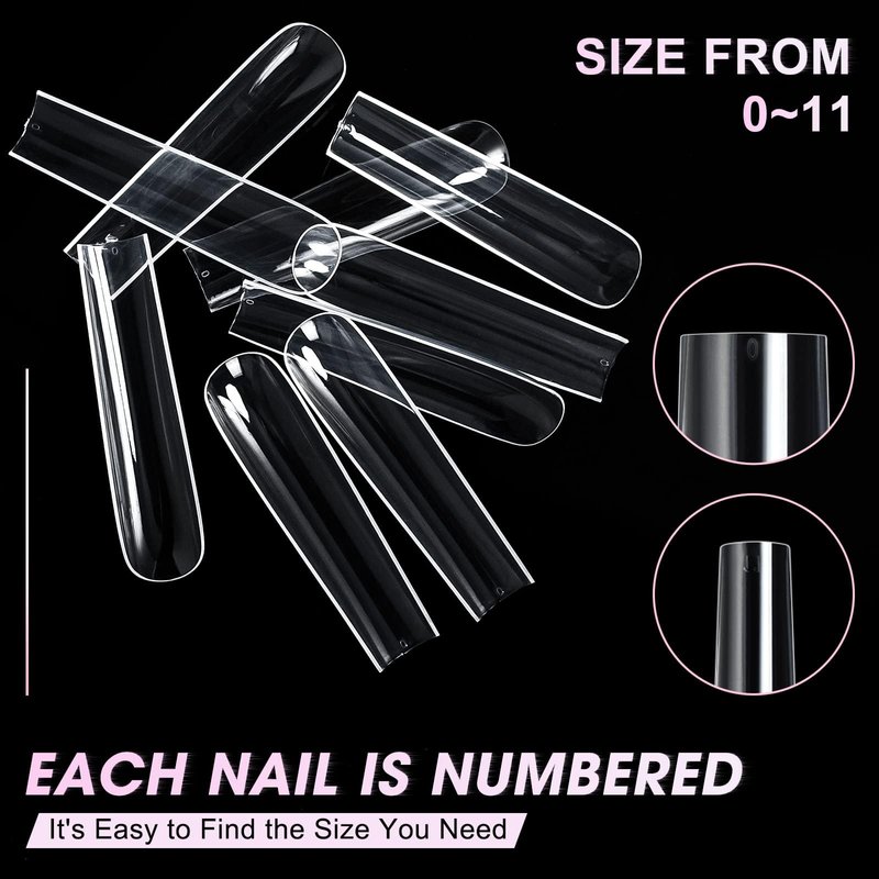- 12 Sizes for You:AORAEM Natural Extra Long Square Full Cover Nail Tips Square offers 12 Sizes, 20pcs nails each size, Individually numbered 0-11, convenient to distinguish and you can easily choose the most suitable size for each finger.