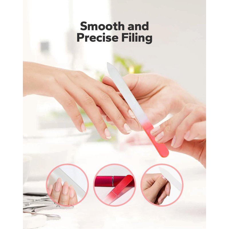 - Smooth and Precise Filing: Achieve precise and salon-quality nail shaping with our fine-grit glass file. Its smooth surface helps prevent nail splitting and peeling, leaving your nails looking perfectly manicured.